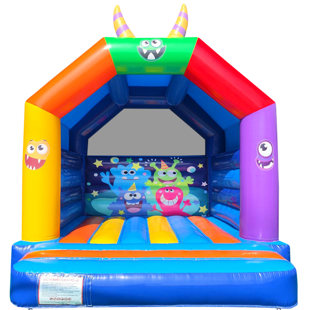 - Benötigter Platzbedarf: 9,90 x 7,60 m (L x B) (nach DIN EN14960) Was bedeutet das? Laut DIN-Norm müssen rund um die Hüpfburg 1,80 m Platz sein und 3,50 m vor der offenen Seite. Dies dient der Sicherheit, die Umsetzung liegt im eigenen Ermessen.