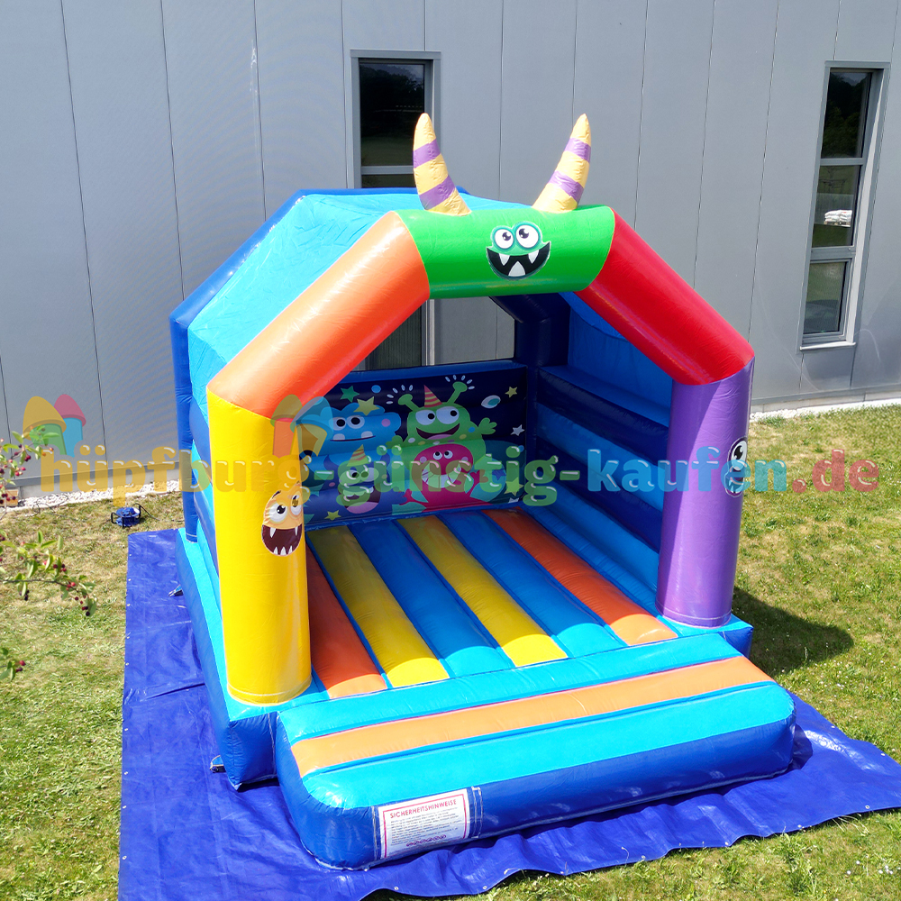 Komm‘ und feiert eine riesige „Monsterparty“ mit unserer Hüpfburg. Die bunten Monster freuen sich auf jeden kleinen Besucher und bieten ein buntes Vergnügen für alle Gäste. Die Hüpfburg bietet eine sichere und bunte Umgebung für unbeschwerten Spring- und Spielspaß. Das Dach schützt die Kinder bei starker Sonne und auch vor leichtem Regen. Durch das Sicherheitsnetz hinten wird der Innenraum komplett geschlossen und macht diese Hüpfburg damit besonders sicher. Alle sicherheitsrelevanten Elemente entsprechen den aktuellen europäischen Normen und wurden im Rahmen der TÜV Prüfung kontrolliert.