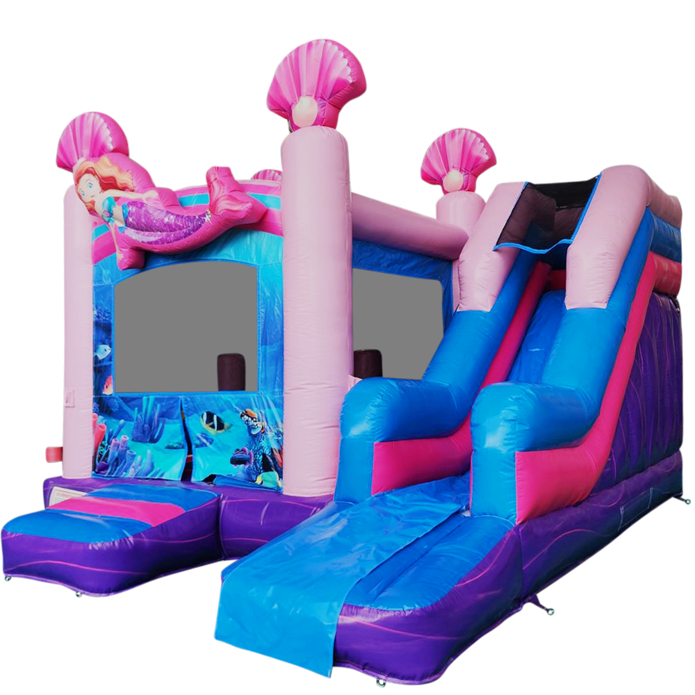Die Hüpfburg Seestern mit Rutsche heißt die kleinen Unterwasserliebhaber mit wunderschönen Motiven von Seesternen, Muscheln und Unterwasser-Motiven willkommen. Durch die Kombination aus Hüpfen, Klettern und Rutschen bietet die Burg vielfältige Möglichkeiten zum Entdecken und Spaß haben. Die extra lange Rutsche an der Seite macht aus einer einfachen Hüpfburg ein ganzes Spieleparadies und durch die rundum mit Netzen geschlossenen Wände können auch die Kleinsten schon in dieser Hüpfburg spielen und toben. Das Netz über der Rutsche bietet zusätzliche Sicherheit für die kleinen, bei jedem Einsatz. Alle sicherheitsrelevanten Elemente entsprechen den aktuellen europäischen Normen und wurden im Rahmen der TÜV Prüfung kontrolliert.