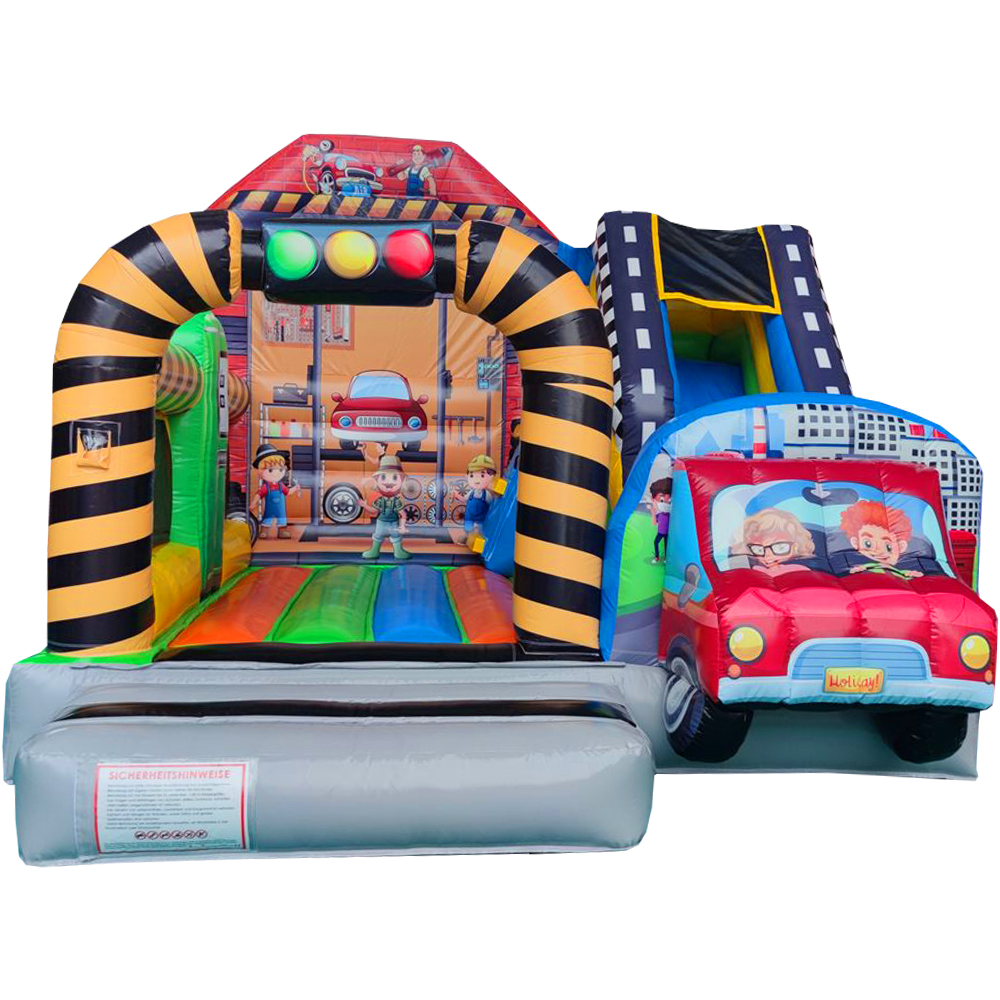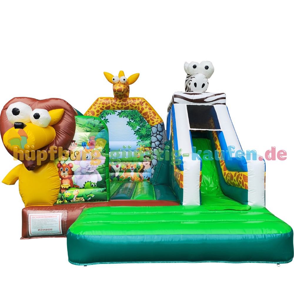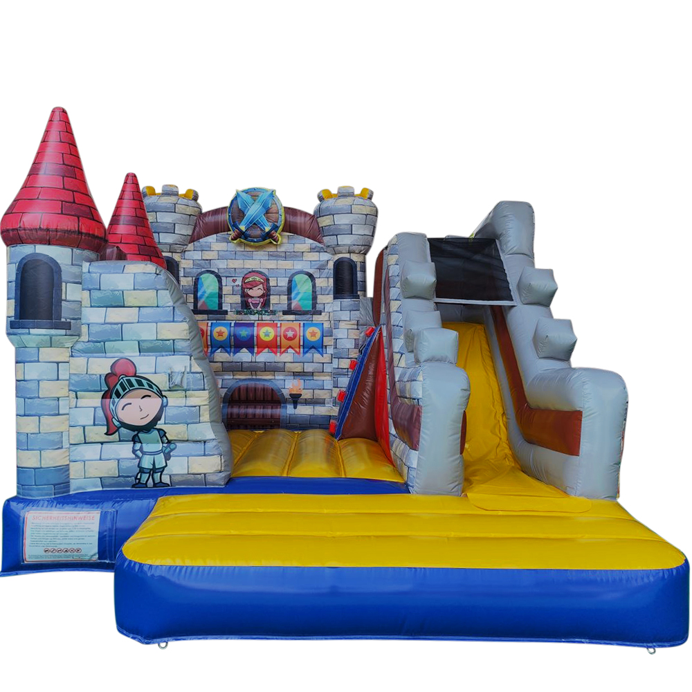 Auch wenn unser Wikinger recht grimmig schaut, freut er sich sehr über hüpfende und rutschende kleine Gäste. Die Kombination aus Hüpfburg und Rutsche ist hier besonders attraktiv gestaltet, da die Rutsche in der Hüpfburg startet und auch wieder endet. Die kleinen Gäste müssen die Burg also nicht verlassen und somit bleibt die Hüpfburg schmutzfrei. Das Dach über der Rutsche und Sicherheitsnetze an allen Öffnungen macht die Hüpfburg sehr sicher bei allen Einsätzen. Alle sicherheitsrelevanten Elemente entsprechen den aktuellen europäischen Normen und wurden im Rahmen der TÜV Prüfung kontrolliert.