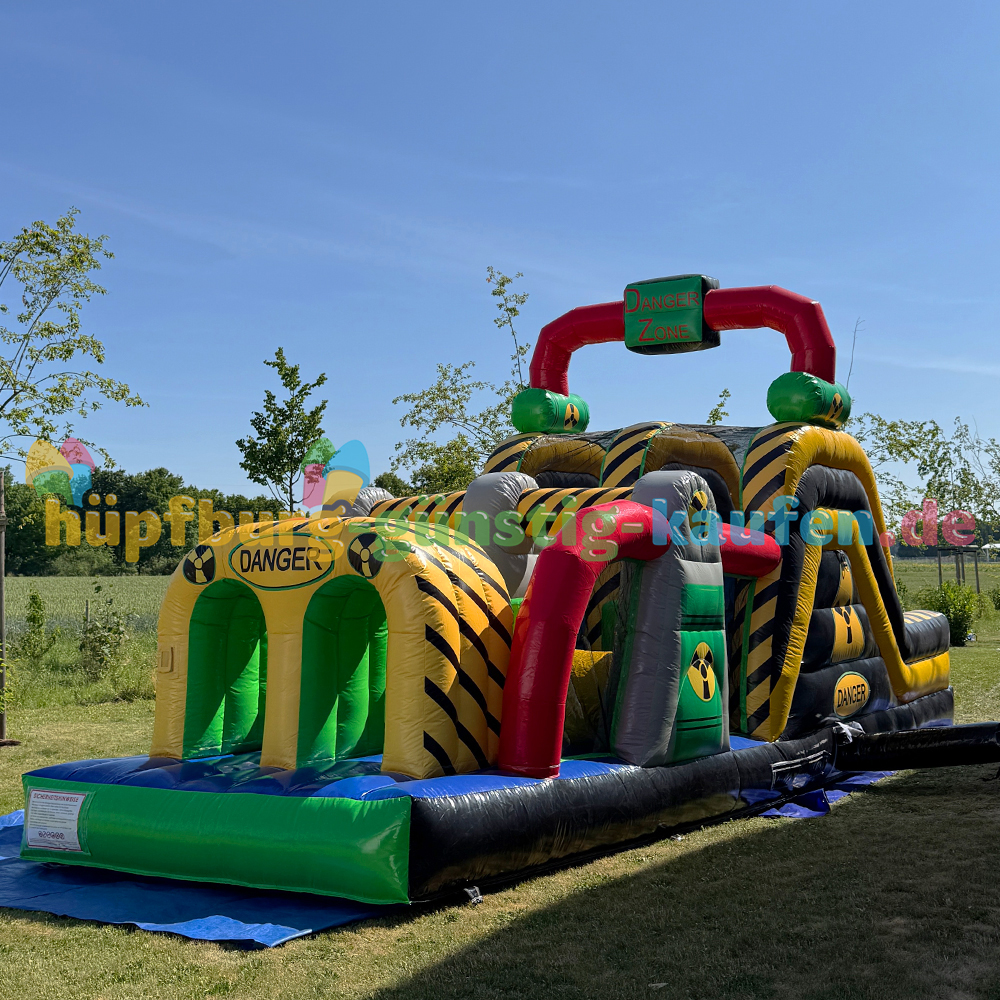 Alle Parcours werden aus robustem Material gefertigt, vom TÜV SÜD geprüft und nach EN 14960 zertifiziert. Der Aufbau erfordert etwas mehr Zeit als bei einer klassischen Hüpfburg, lässt sich mit etwas Erfahrung aber gut bewältigen. Wir liefern jedes Modell sorgfältig verpackt und termingerecht innerhalb Deutschlands.